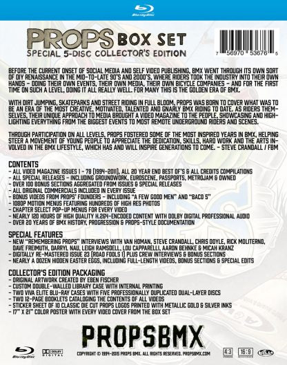With dirt jumping, skateparks and street riding in full bloom, Props was born to cover what was to be an era of the most creative, motivated, talented and gnarly BMX riding to date. As riders themselves, their unique approach to media brought a Video Magazine to the people, showcasing and highlighting everything from the biggest events to most remote underground riders and scenes.