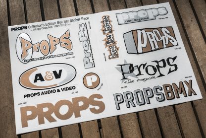 - 11″ x 7″ sticker sheet of 10 die-cut Props logos printed with metallic gold & silver inks