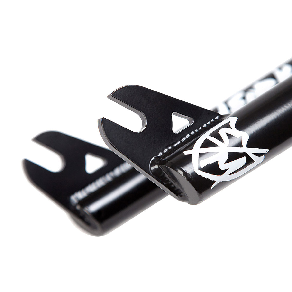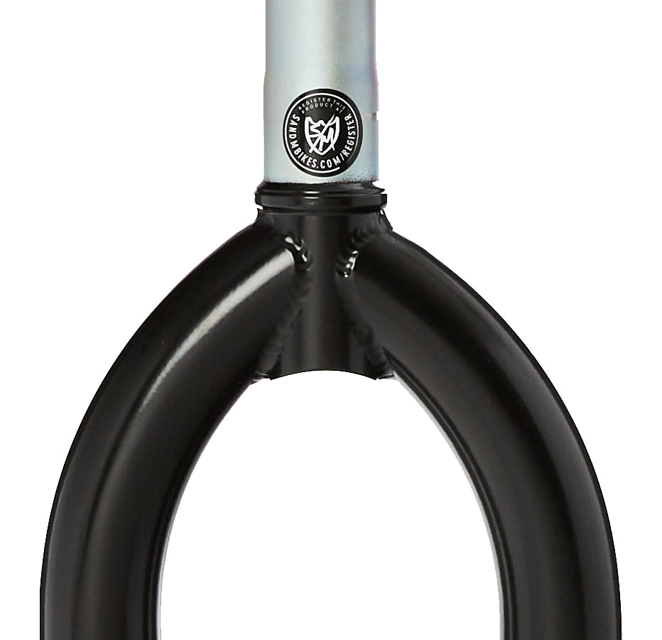 "The tried and true S&M Widemouth fork offers plenty of tire clearance in a steeper 26mm offset for a more responsive front end. Less fork offset creates a shorter overall wheelbase for more responsive handling of your entire bike. Nose wheelies, pivots and a balance point that’s easier to reach. Believe and achieve. For 20 or 22″ wheel sizes.".