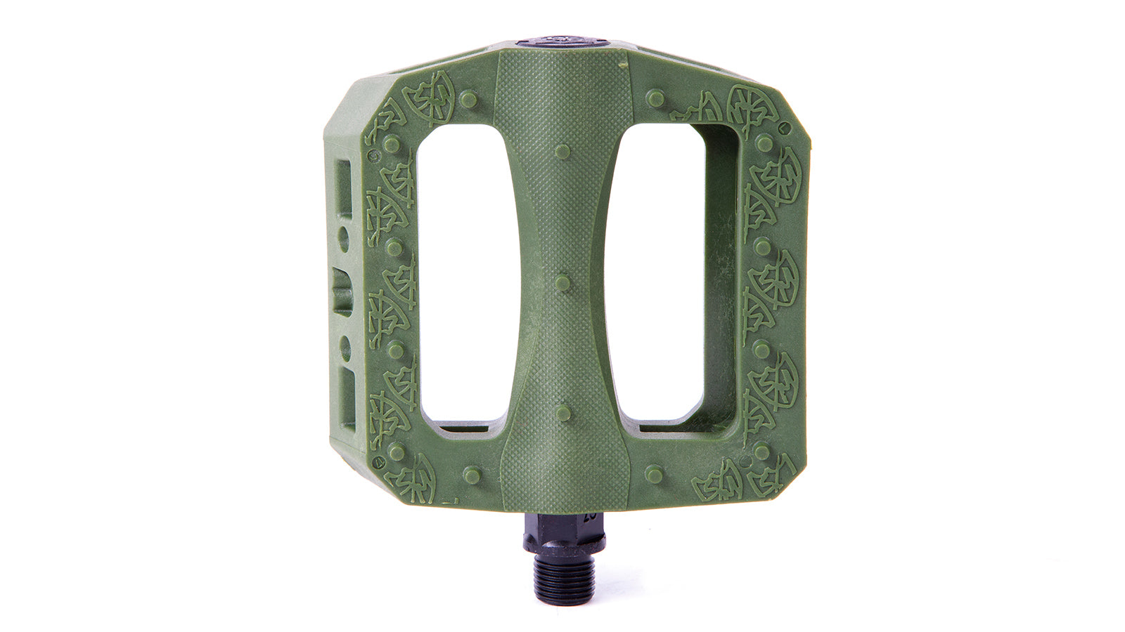 "Oversized CrMo spindle for strength. Large body. Thin design. Accepts 6mm Allen, 15mm and 17mm wrench for installation/removal. Wider surface also allows use of adjustable wrench. The larger, ergonomic shape is designed for grip and support. Micro-knurled surface and molded pins for traction. Long lasting nylon/fiber blend for sliding.".